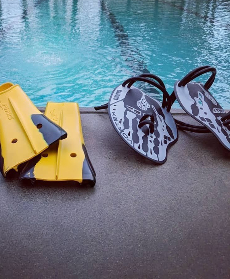 As I became more serious about swimming, I started investing in gear—fins, hand paddles, and a pull buoy. I began doing drills and structured workouts on my own.